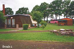 Camping - 8 domków campingowych (40 miejsc), w każdym dwa pokoje 2-osobowe oraz jeden pokój 1-osobowy. Dostęp do budynku socjalnego z pełnym węzłem sanitarnym.